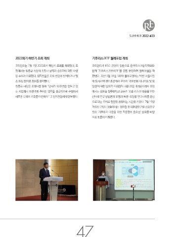 2022 Korean Re Insurance Webinar 개최 우즈베키스탄 거래사 초청 언더라이팅 세미나 개최 2022회기 하반기 조회 개최 기후리스크TF 월례포럼 개최